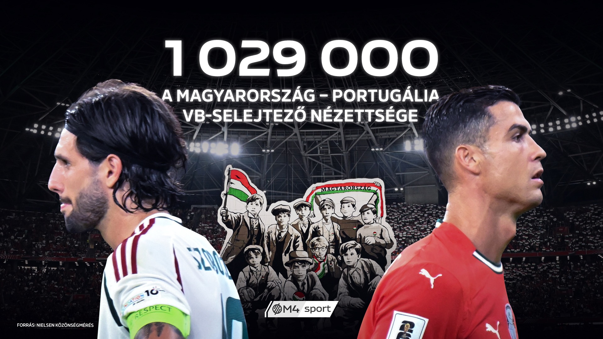 A sztárjátékosokkal pályára lépő portugálok elleni találkozóra nemcsak a helyszínen volt kíváncsi több tízezer ember, hanem a tévé képernyői elé is több mint egymillió nézőt vonzott. Az M4 Sport közvetítése lett 2025-ben a legnézettebb műsor a hazai tévés piacon, vagyis még az augusztus 20-i tűzijáték közvetítését is túlszárnyalta a vb-selejtező.